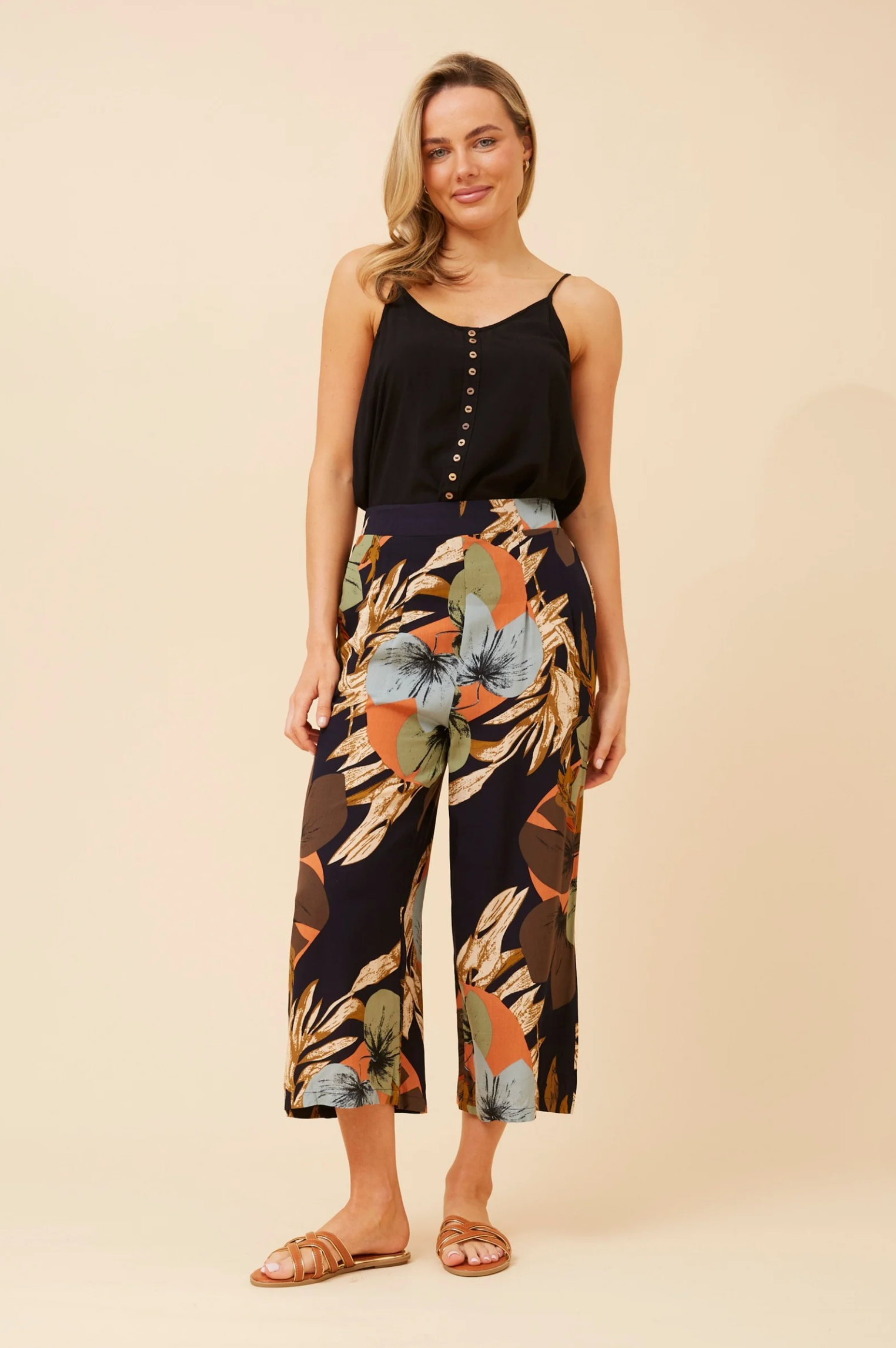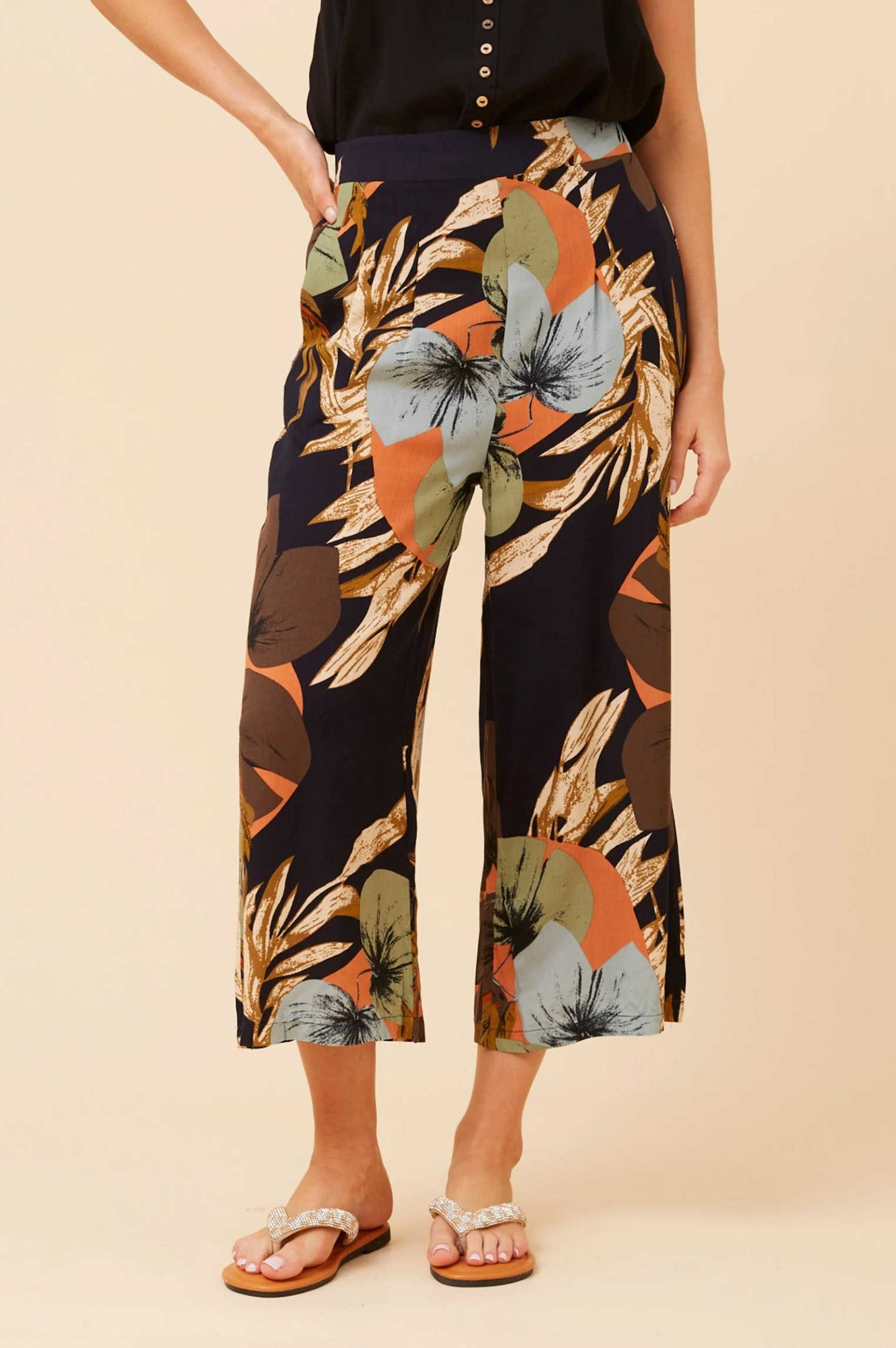 Elevate your everyday style with these Caroline Morgan crop pants—where comfort meets contemporary flair. Featuring a striking dark navy base with tropical floral print, they're designed to turn heads. The flat front waistband pairs perfectly with an elasticated back for a custom fit, while side seam pockets keep your essentials close. The soft, cropped wide-leg silhouette skims beautifully over sneakers or sandals, making these pants your new go-to for effortless, on-trend dressing. Perfect for matching back with the same print top.