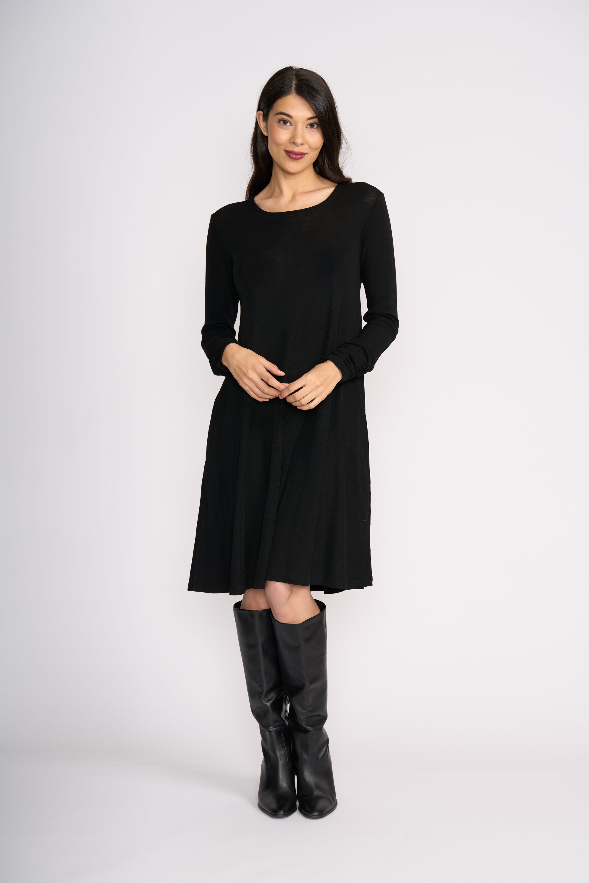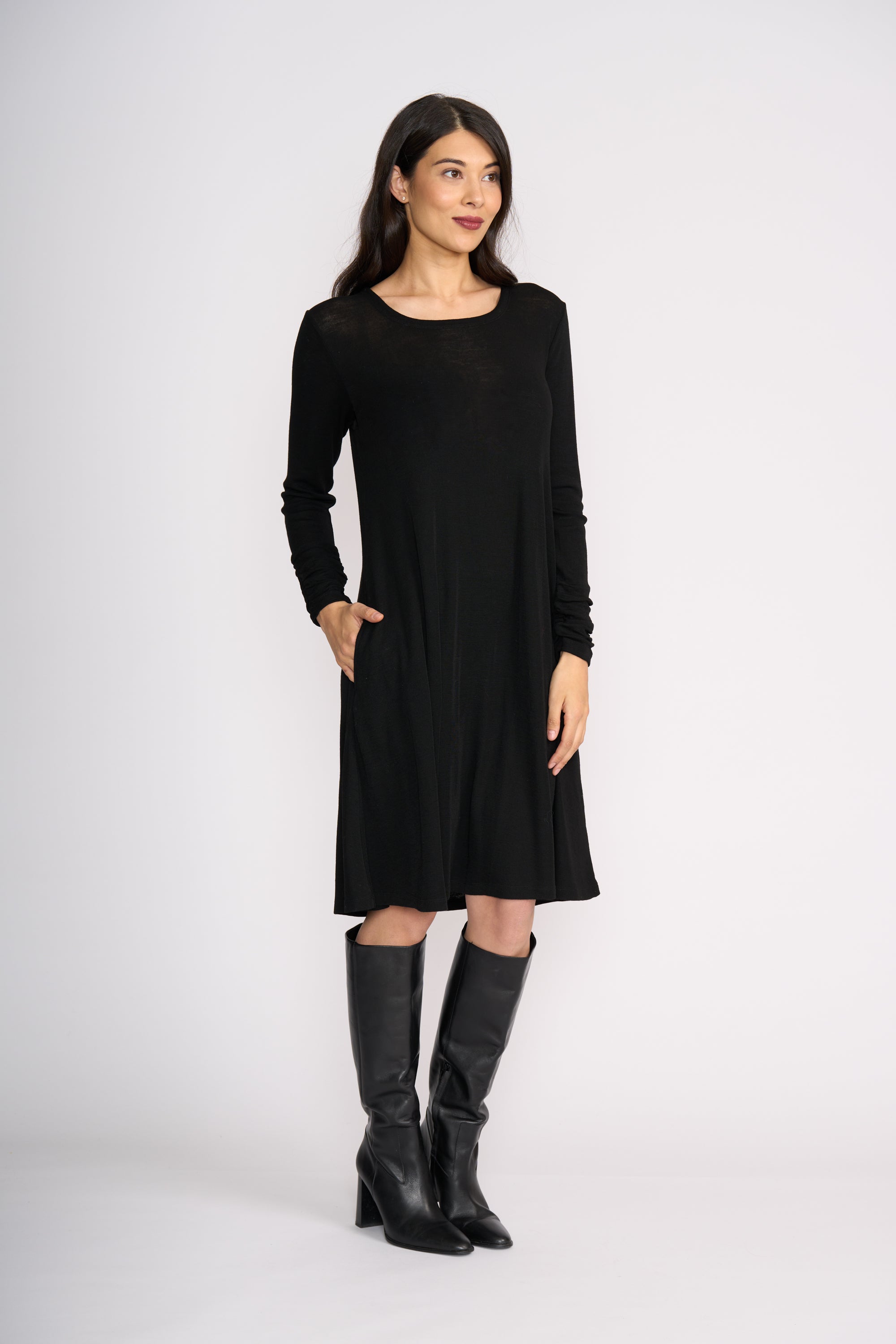 Easy, elegant and endlessly wearable — the Delightful Dress is crafted from soft 100% merino wool, offering lightweight warmth with a beautiful natural drape. Designed in a relaxed A-line silhouette, it skims the body without clinging, making it the perfect throw-on piece for everyday comfort and effortless style. Dress it up with boots or keep it casual — this is your go-to winter staple.