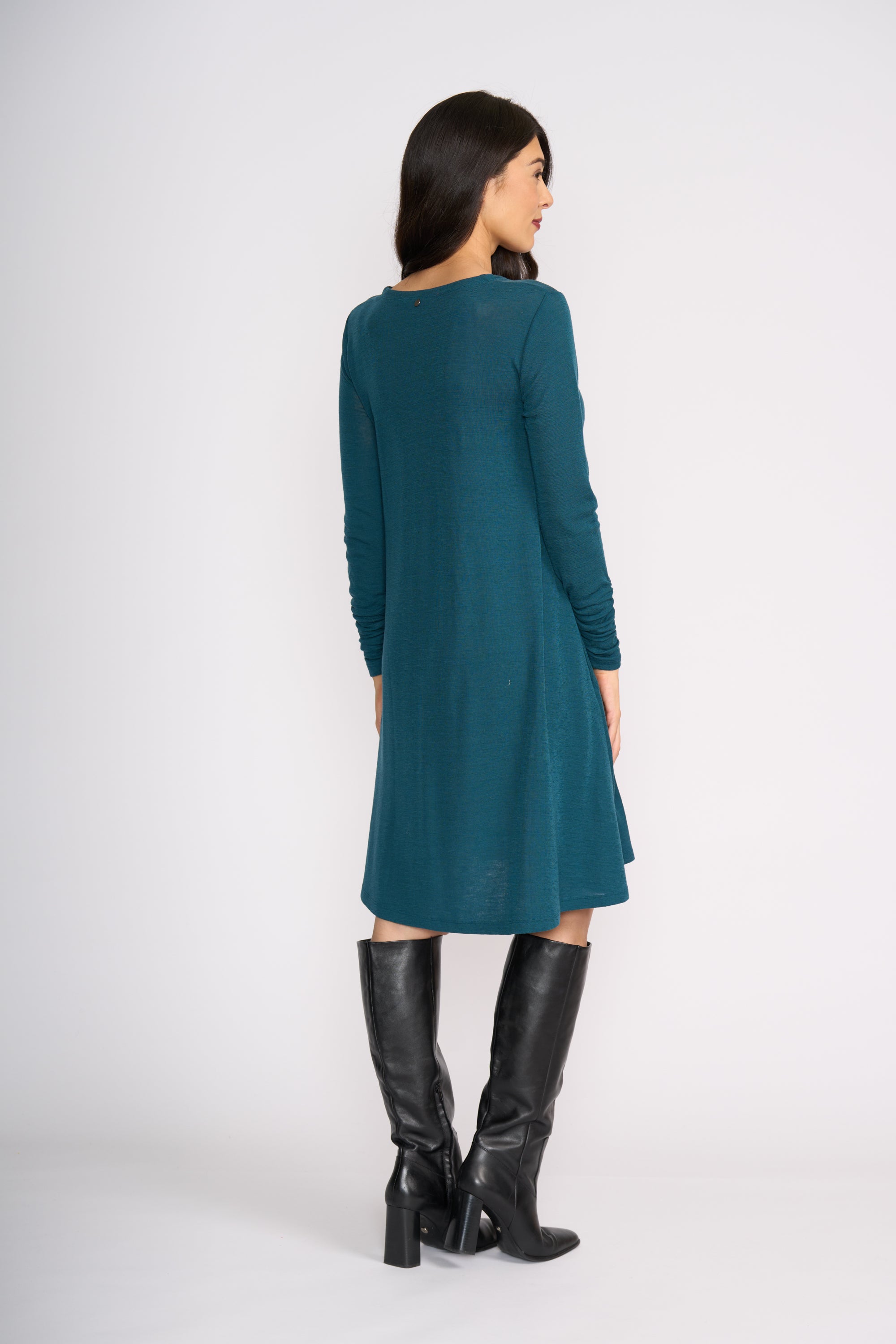 Easy, elegant and endlessly wearable — the Delightful Dress is crafted from soft 100% merino wool, offering lightweight warmth with a beautiful natural drape. Designed in a relaxed A-line silhouette, it skims the body without clinging, making it the perfect throw-on piece for everyday comfort and effortless style. Dress it up with boots or keep it casual — this is your go-to winter staple.