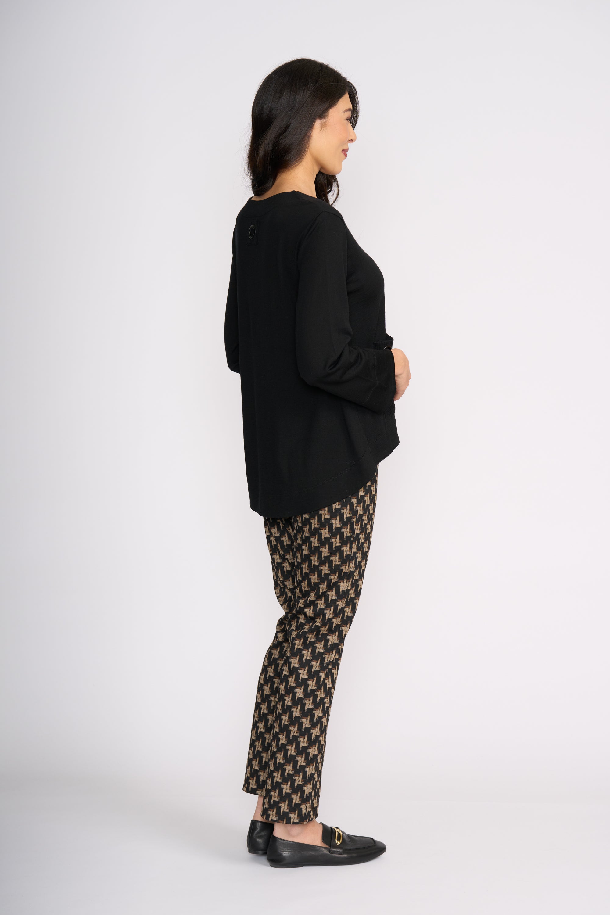 Relaxed, refined and effortlessly wearable — the Secret Agent Top is your go-to for understated style. Crafted from 100% merino wool, it offers a soft, breathable feel with a beautiful natural drape. The loose silhouette is complemented by a statement patch pocket with an eyelet detail, adding a subtle design edge while keeping it practical. Easy to pair with everything from tailored pants to casual denim, this is elevated everyday dressing made simple and perfect for dressing up.