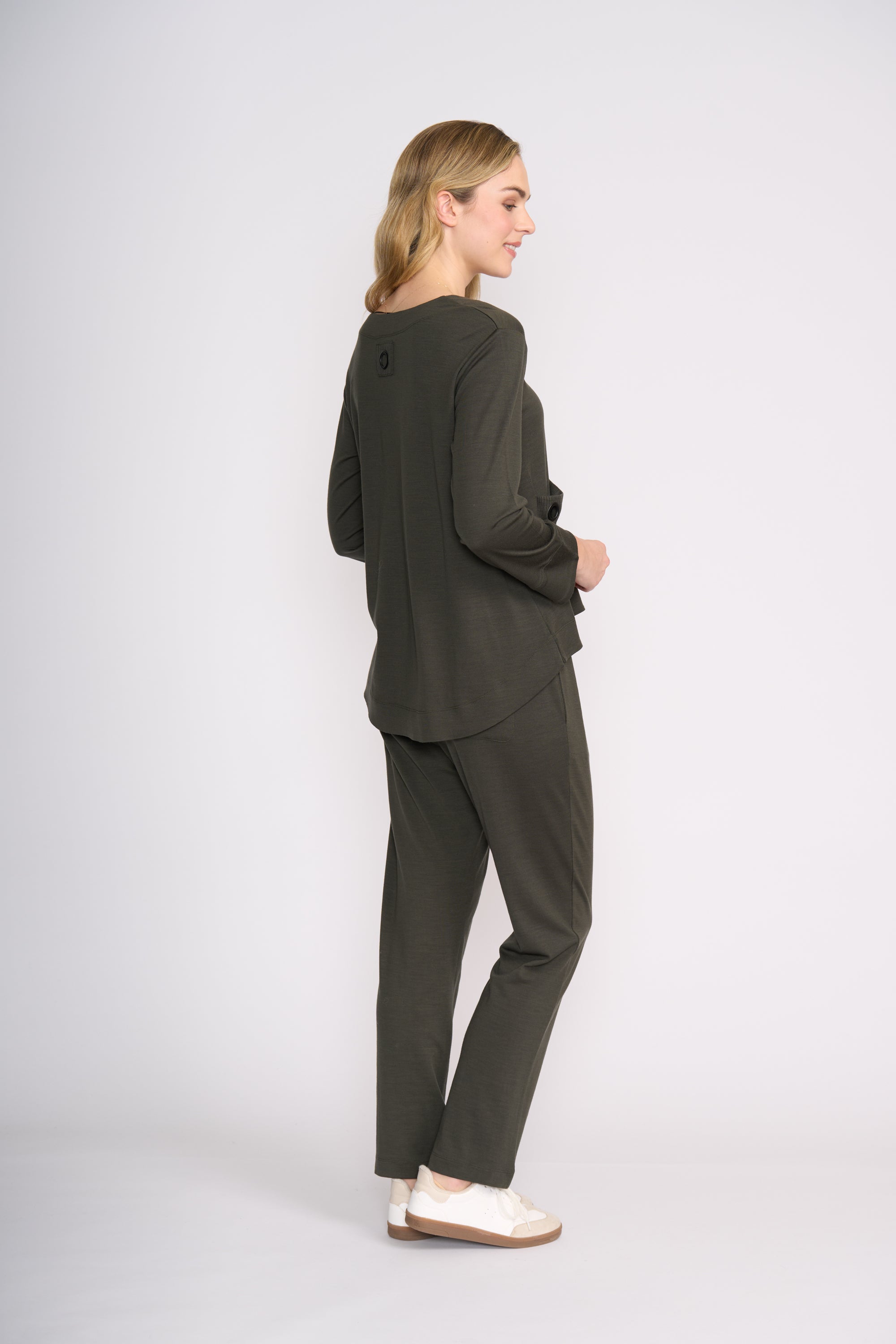 Relaxed, refined and effortlessly wearable — the Secret Agent Top is your go-to for understated style. Crafted from 100% merino wool, it offers a soft, breathable feel with a beautiful natural drape. The loose silhouette is complemented by a statement patch pocket with an eyelet detail, adding a subtle design edge while keeping it practical. Easy to pair with everything from tailored pants to casual denim, this is elevated everyday dressing made simple and perfect for dressing up.