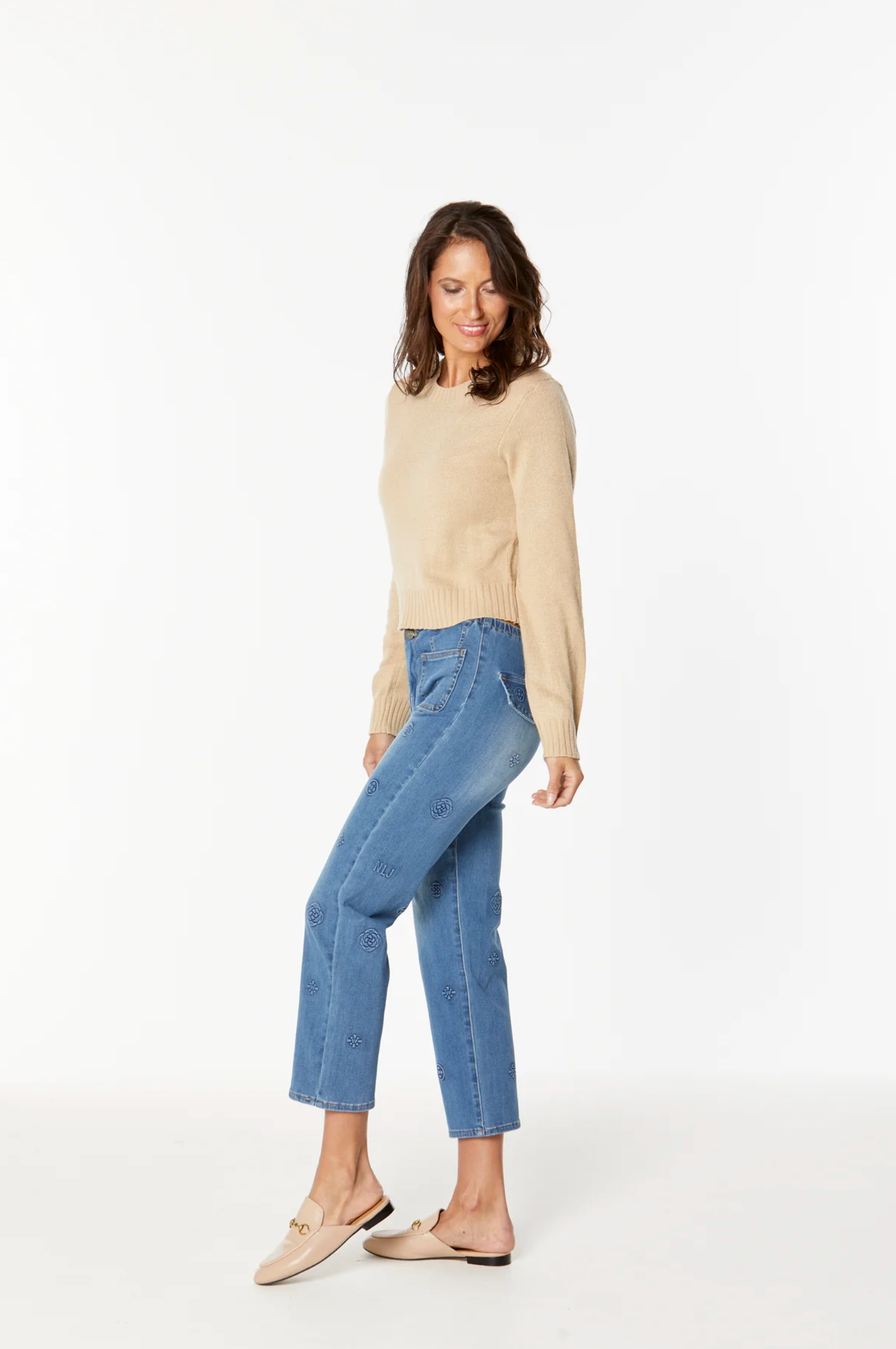 The New London Epping Straight Jean brings comfort and individuality to your denim rotation. Crafted in a soft mid-wash denim with subtle stretch, this mid-rise style features a relaxed straight leg and cropped length—ideal for everyday wear. Finished with tonal embroidery and patch pocket detailing, it's the perfect pair to dress up or down.