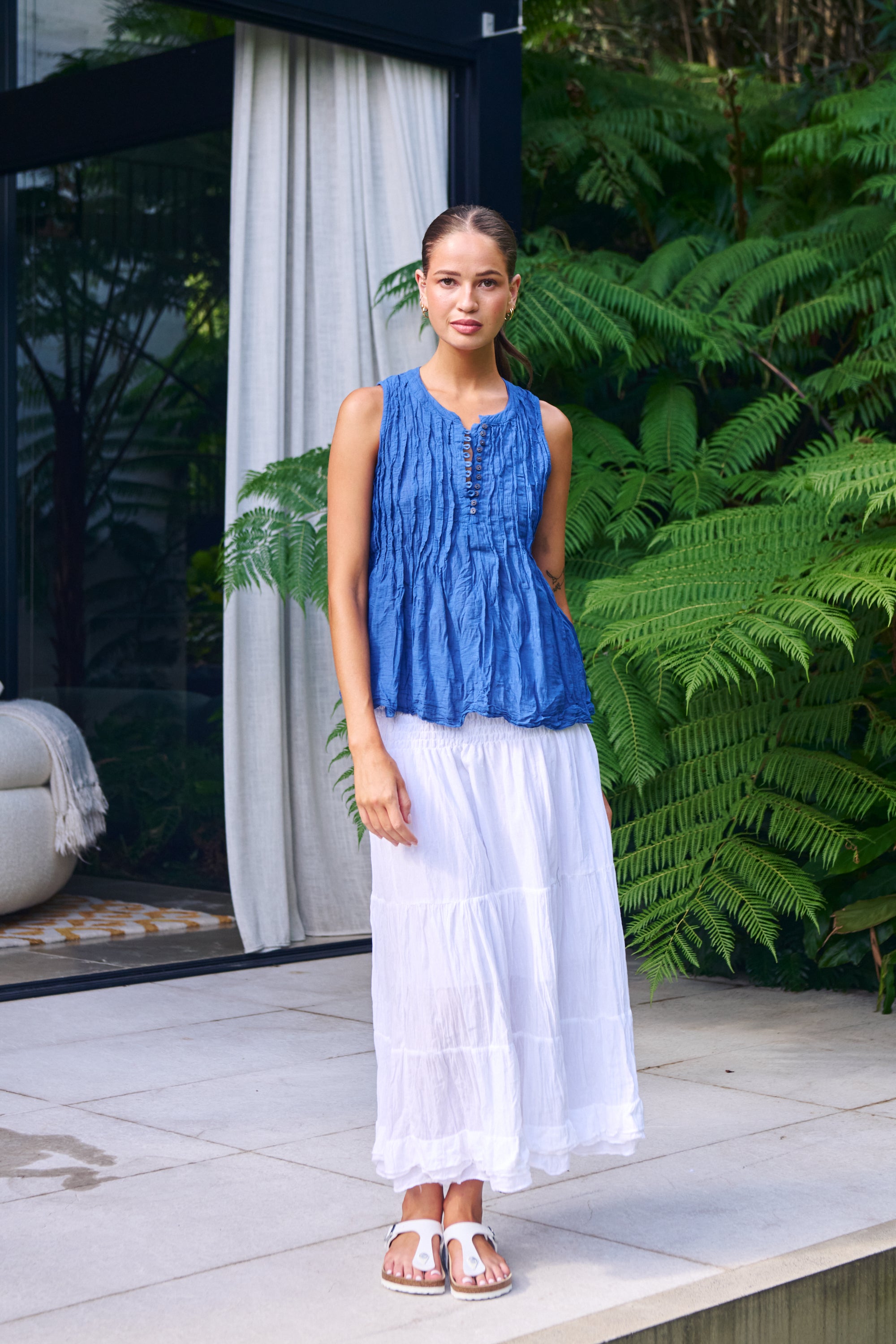 - Hip-length with fluid drape for easy tucking or wear-out styling
