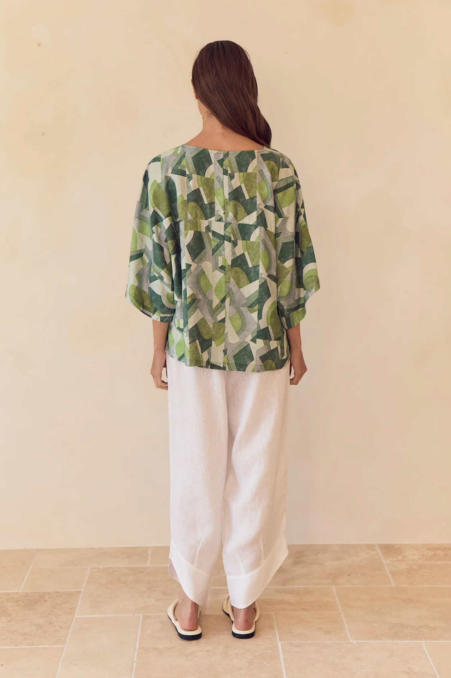 A throw-on print top with clean lines and plenty of ease. The Wide Sleeve Print Top pairs a modern relaxed cut with relaxed half sleeves for effortless drape. A tidy round neckline and subtle seam detailing keep it refined—equally at home with tailored pants or off-duty denim.