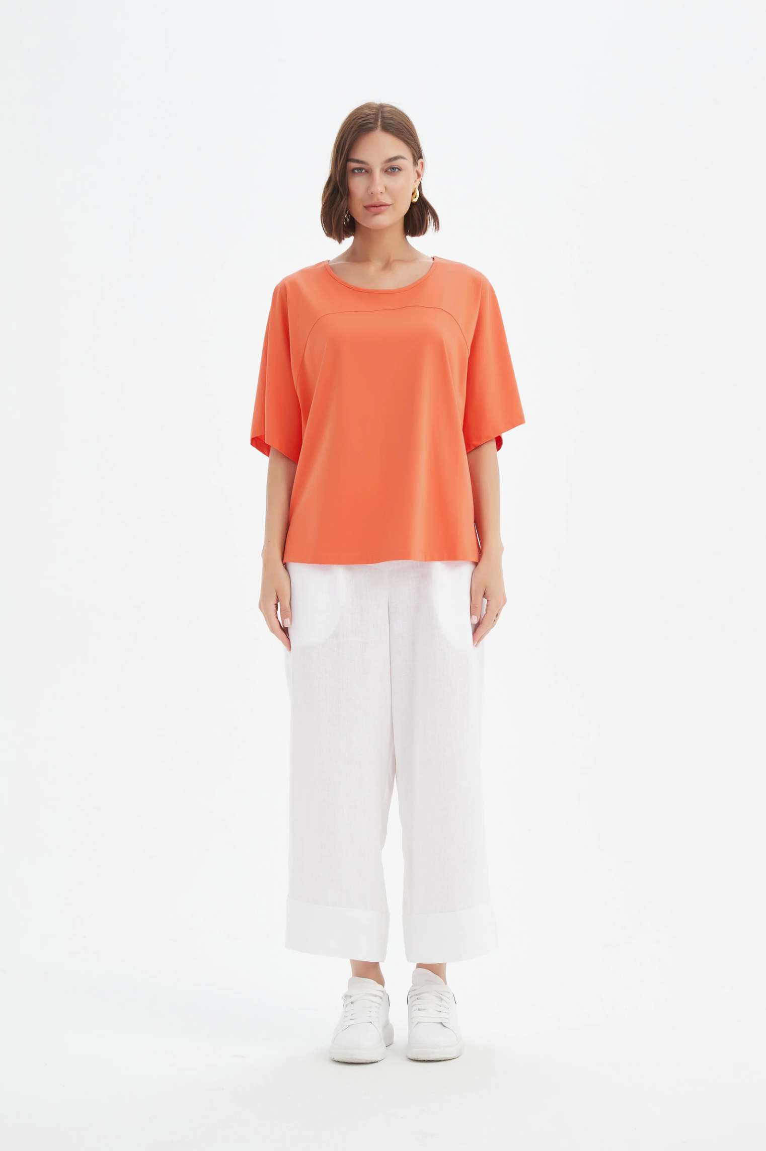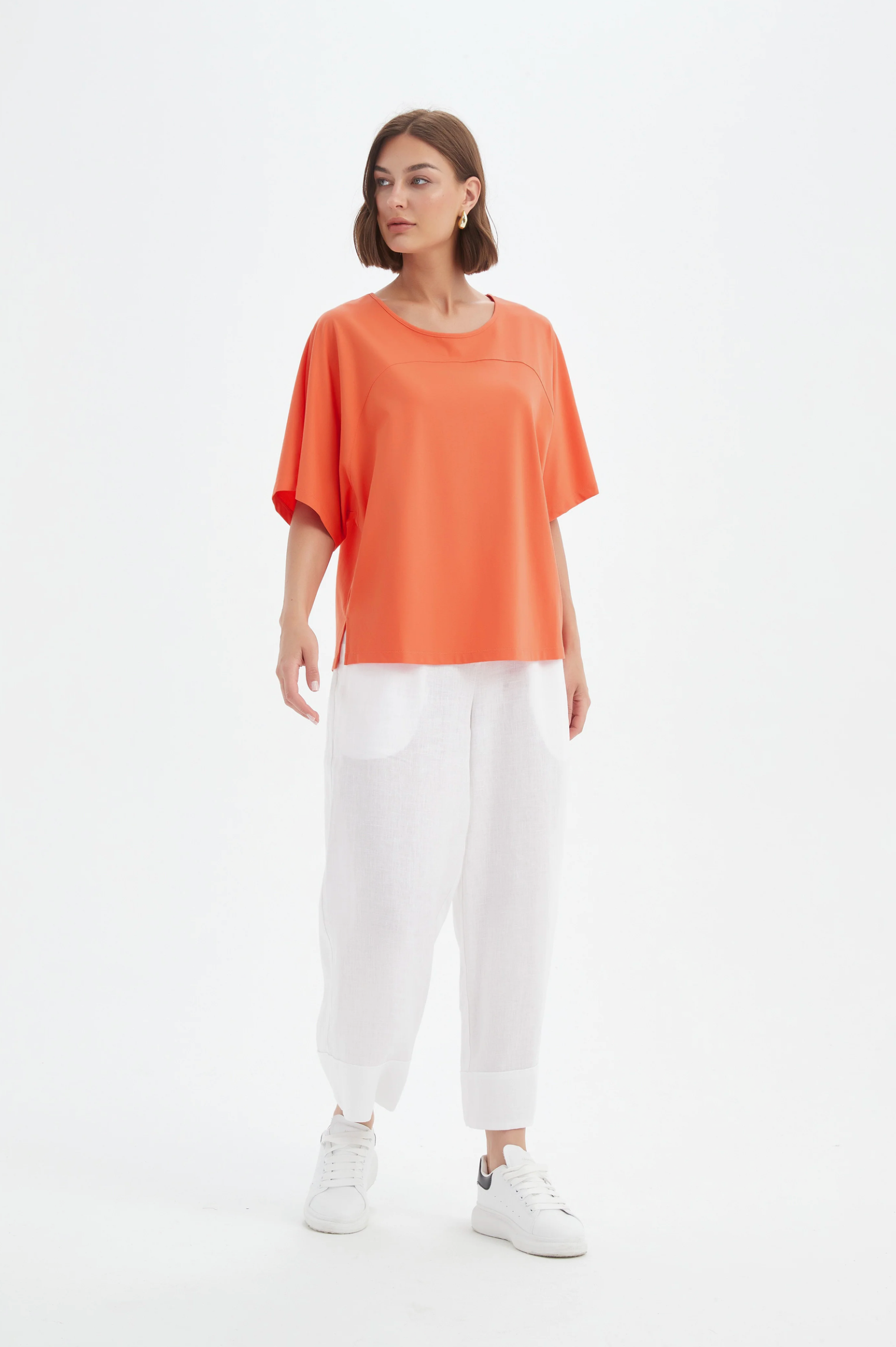 Tirelli Wide Sleeve Yoke Tee in Ember Orange