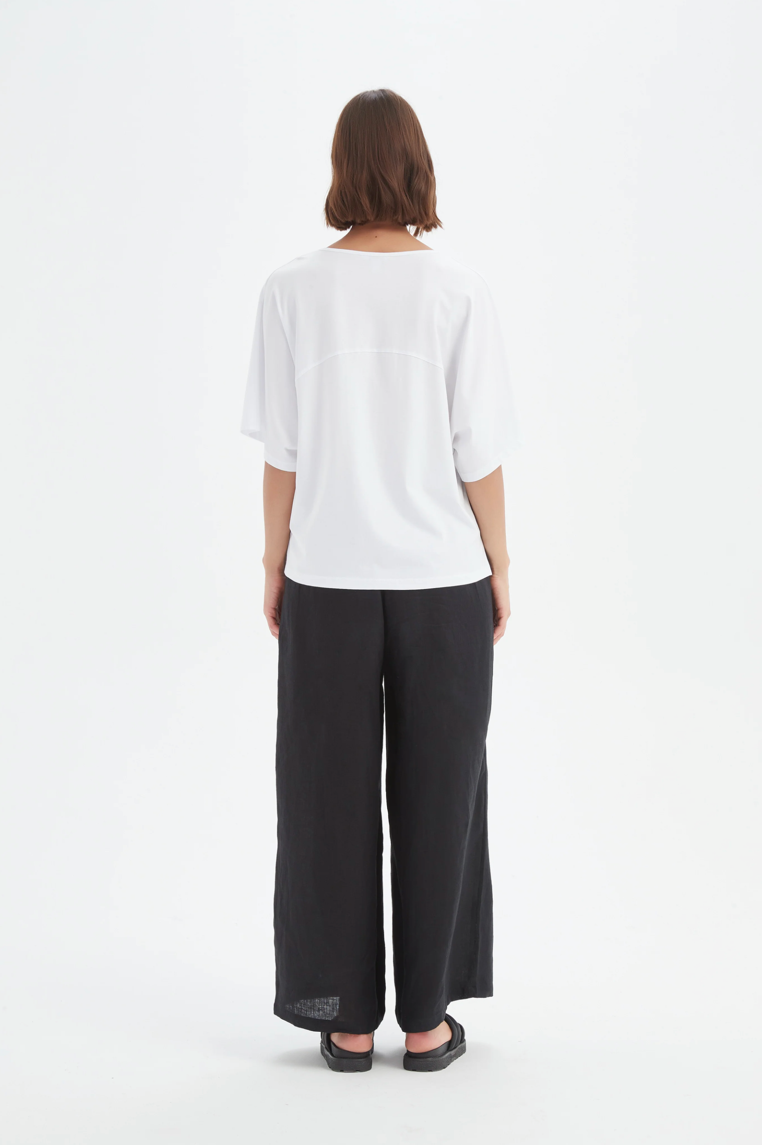 An elevated everyday tee with an easy drape. The Wide Sleeve Yoke Tee is cut in soft cotton jersey with a relaxed, boxy shape and beautifully flared short sleeves for movement. A clean round neck keeps it timeless, while the subtle yoke detail adds just enough polish. Toss it on with denim or linen and call it done.