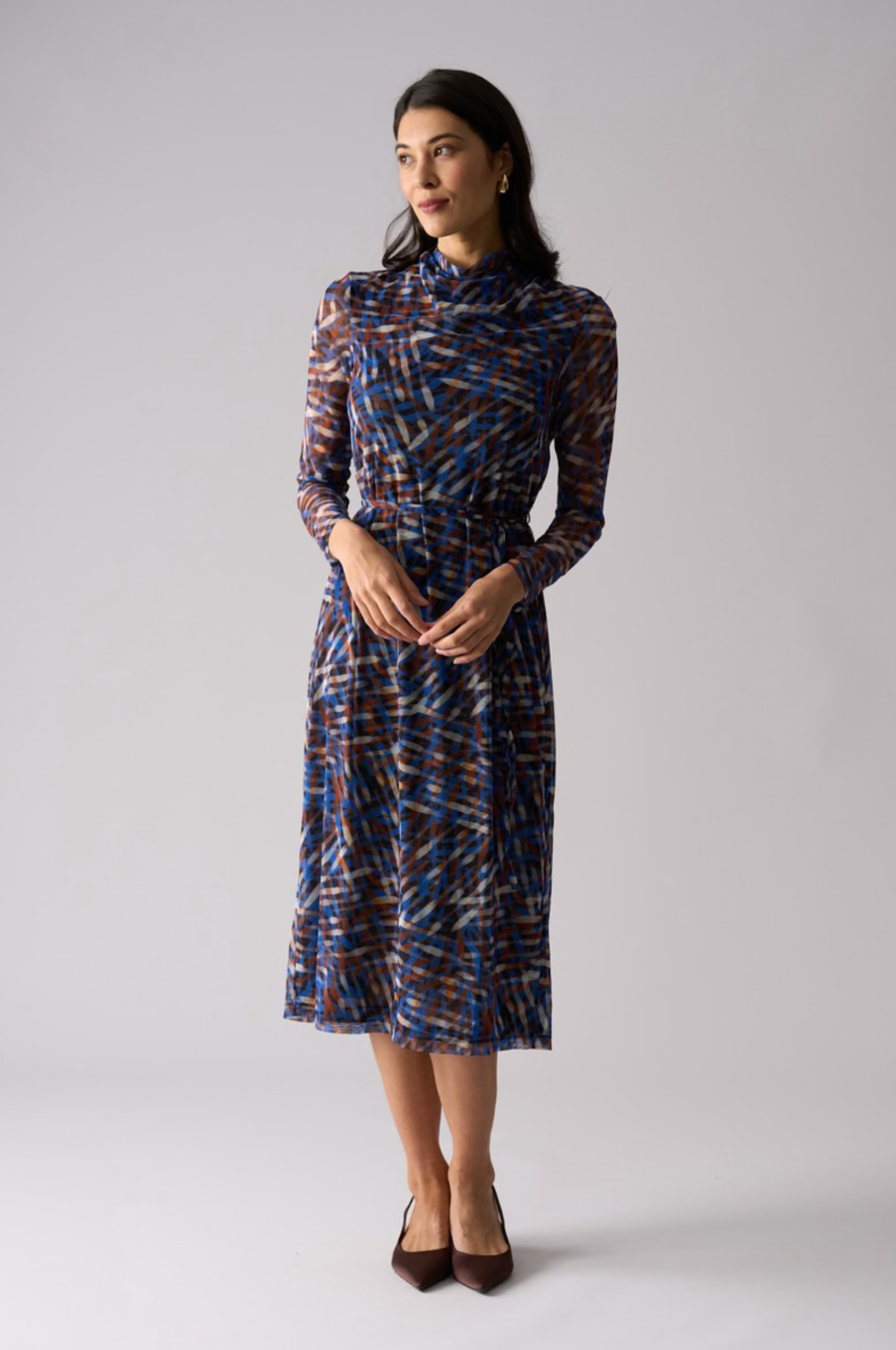 - Midi-length silhouette